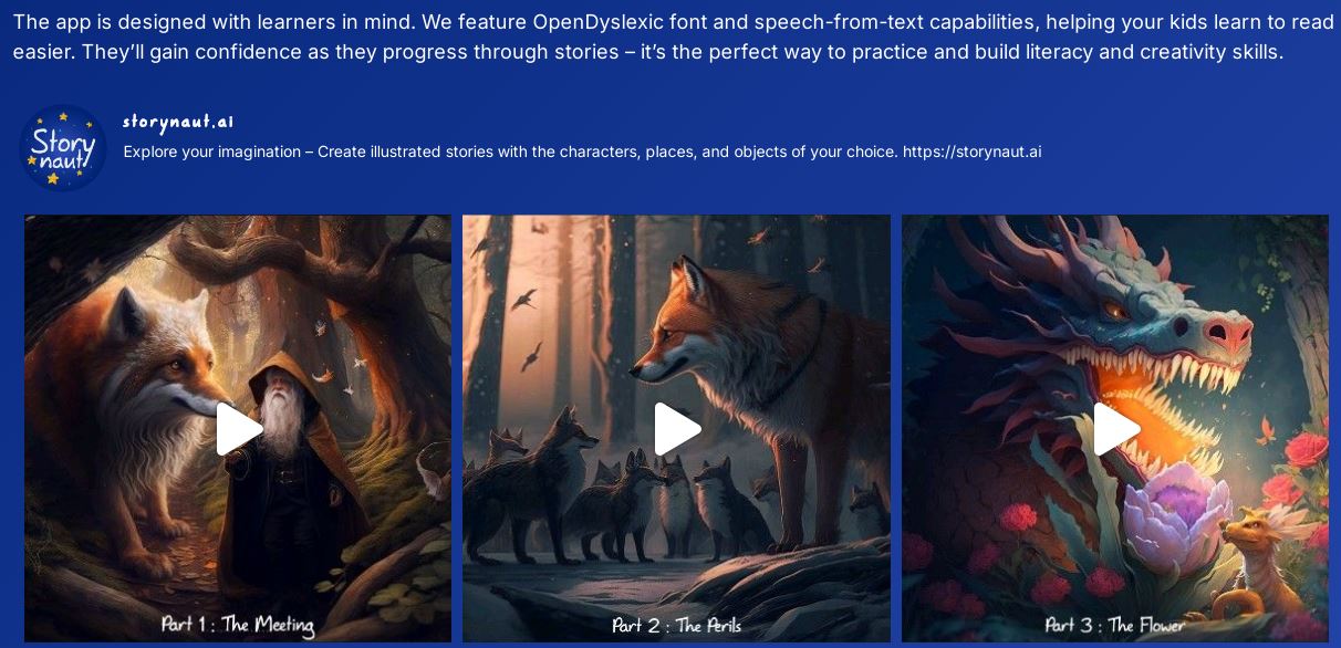 我们特别为正在成长的小读者们用心设计。Storynaut 不仅搭载了清晰易读的 OpenDyslexic 字体,还贴心地加入了文字转语音功能,陪伴孩子一步步走进阅读的世界。随着故事一页页展开,孩子们会在趣味中积累自信,不仅轻松提升识字与朗读能力,更悄悄点燃心中创造的火焰。